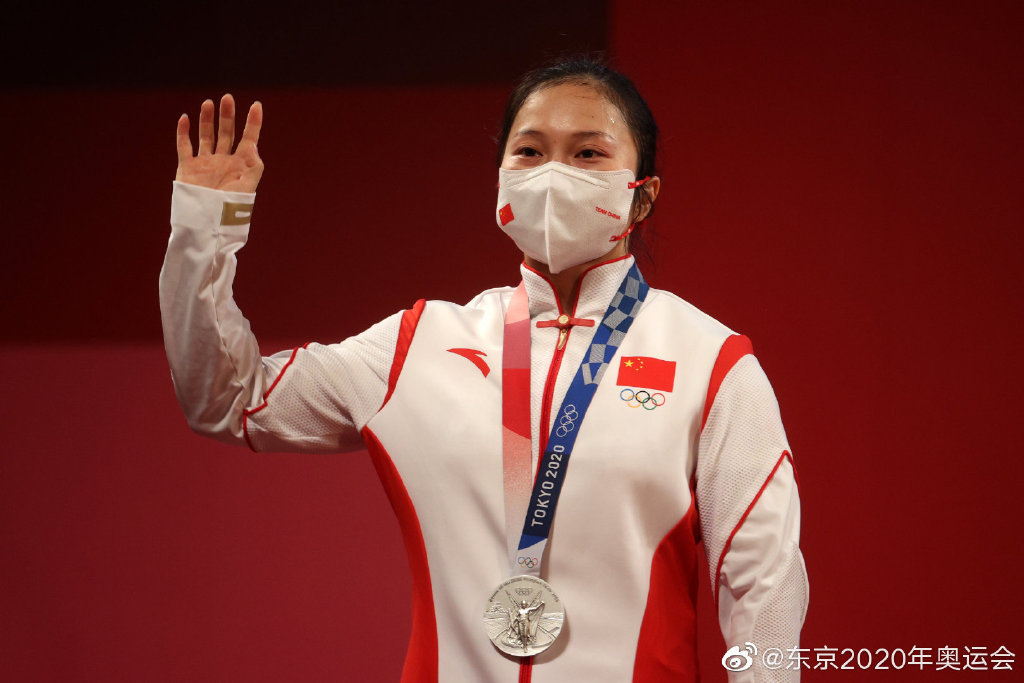 中国选手廖秋云以抓举97公斤,挺举126公斤,总成绩223公斤获得东京奥运会女子举重55公斤级银牌。