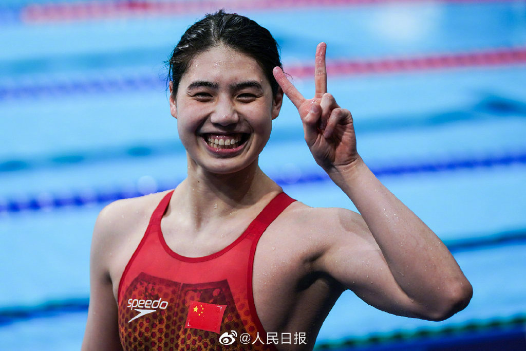 赛后,张雨霏对着镜头露出了甜美的笑容,并握拳大喊了一声“加油”!