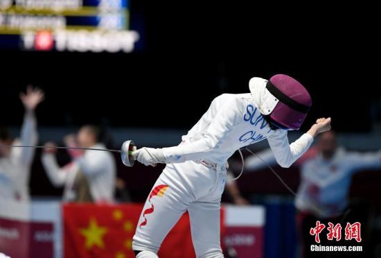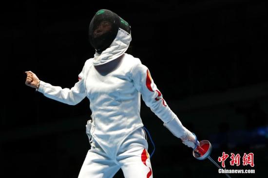 资料图:在里约奥运会女子重剑团体半决赛中,中国队45比36战胜爱沙尼亚队,晋级决赛。图为孙一文。中新网记者 富田 摄