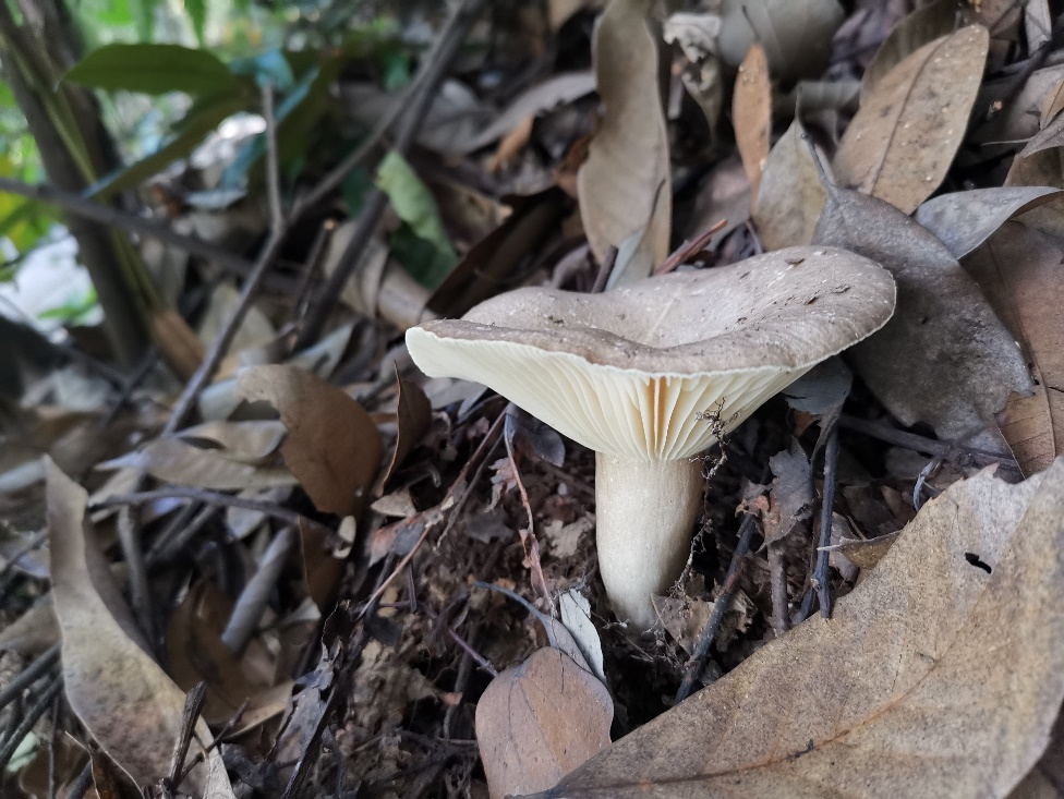 据介绍,亚稀褶红菇主要生长于马尾松与栲树等山毛榉科植物的混交林中。成熟后中部呈下凹呈漏斗状,菌盖表面浅灰色至煤灰黑色,成熟后常向上反卷,边缘无条棱。菌肉白色,受伤后易变红色而不再变黑色,菌褶白色,伤变红色,菌褶厚,稍密至稍稀疏,不等长,脆而易碎,菌柄浅灰色,内部松软。该菌与老百姓经常采食的红菇属中的其它种类如稀褶红菇、密褶红菇极为相似,老百姓统称为火炭菌,很难从外观形态上将它们区分开来。