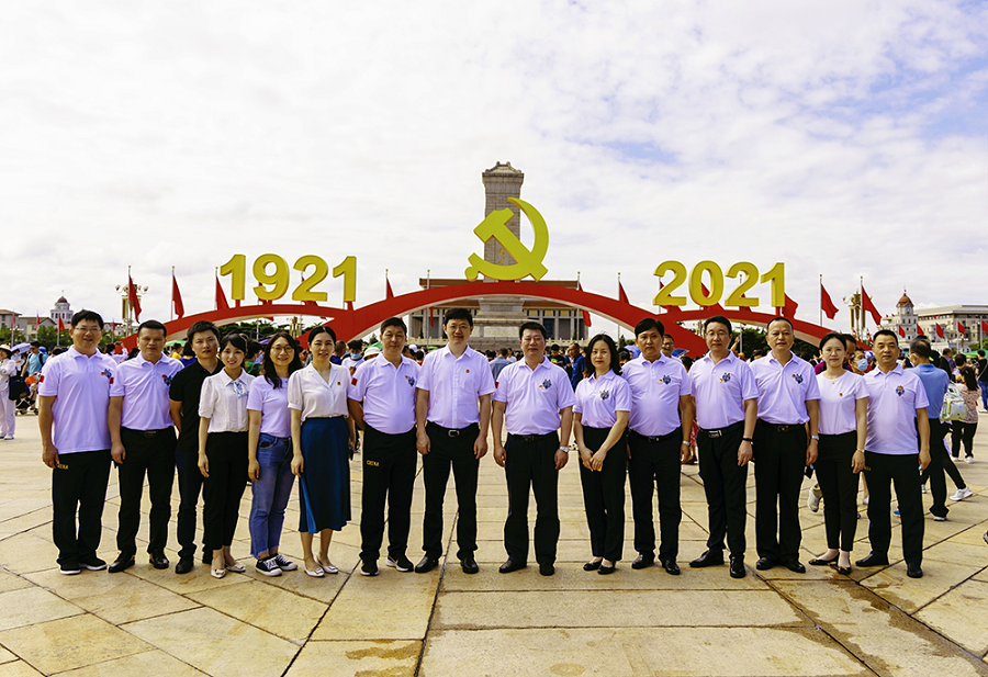 省自贸工作驻京专班全体党员首先到毛主席纪念堂,瞻仰主席遗容,参观毛泽东纪念展,缅怀伟大领袖的丰功伟业。随后,大家来到了天安门广场,在庄严的天安门城楼前和“1921-2021”标牌前,全体党员对着阳光下熠熠生辉的党徽,大家庄严宣誓:请党放心,强国有我;请党放心,自贸有我。