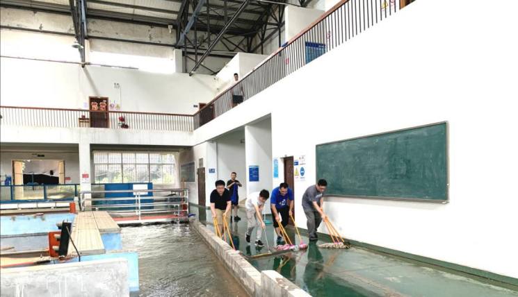 新湖南客户端7月19日讯(通讯员 綦丽)将近万平米的空间清扫一新,把3个实验室内的仪器整理、归类到位……7月15日上午,长沙理工大学水利工程学院党委副书记银波,副院长邓斌、水利实验中心主任余关龙等10余名专业教师与近200余名硕士研究生在水利水运实验中心进行了一场4小时的劳动实践。