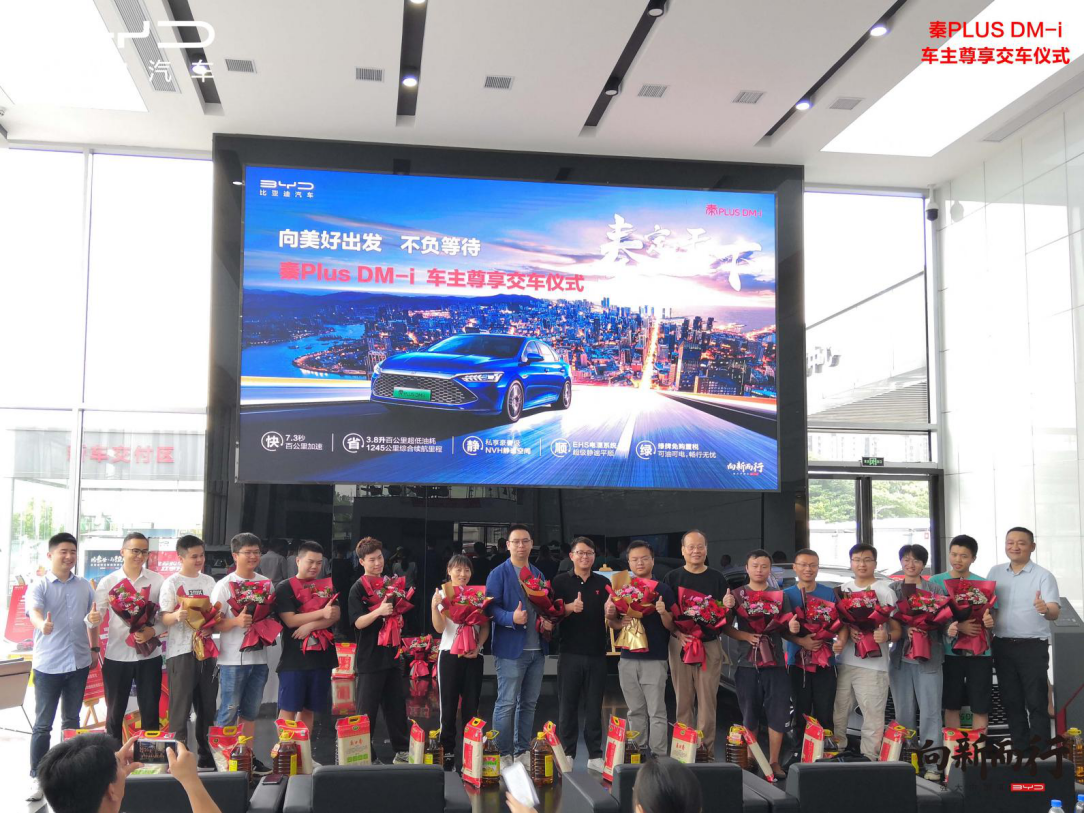 新湖南客户端7月2日讯(通讯员 吴大伟)7月1日,比亚迪秦PLUS DM-i车主尊享交车仪式在湖南永通华迪比亚迪工厂店举行。22位准车主领取了属于自己的“专属座驾”。