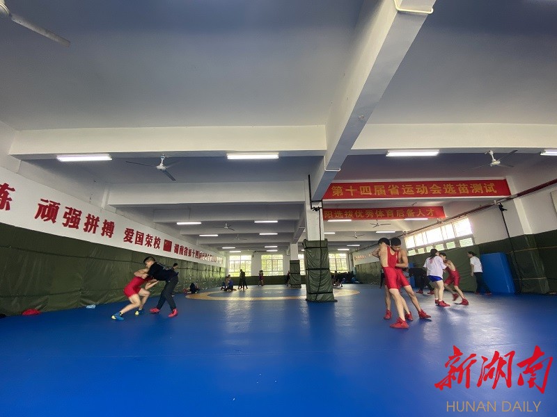 “当时周倩他们的训练条件可没这么好。”在一旁观训的武小平指着校园内一座塔吊的方向向记者介绍,岳阳市委、市政府投资,正在建设摔跤柔道射击馆和游泳馆,为了迎接明年的省运会。