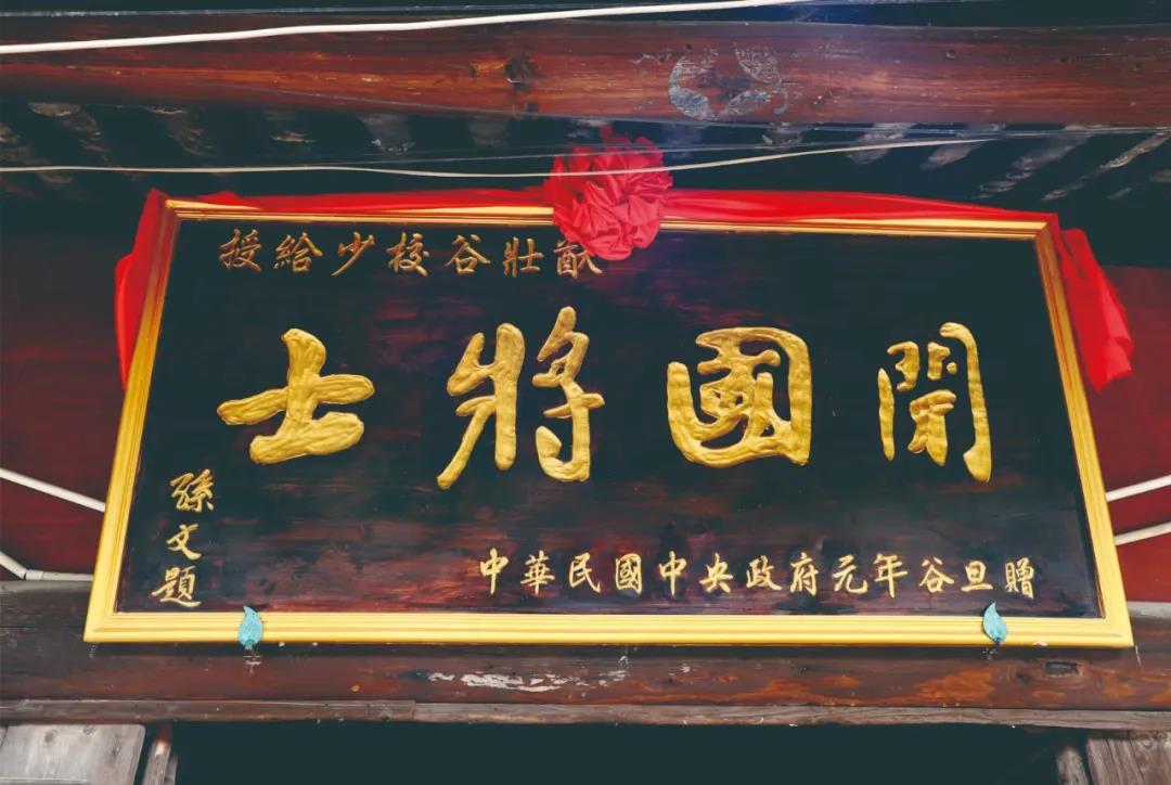 行走中,一幢又一幢的木屋,像画一样进入我的视野。在一幢木屋上,挂着“中国古村落”的牌子,牌子的上方,还有一块“开国将士”的木匾。这匾,是中华民国中央政府元年元旦为少校谷壮猷赠送。