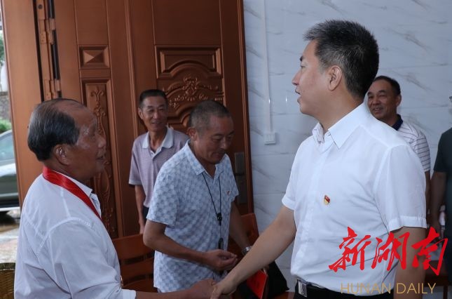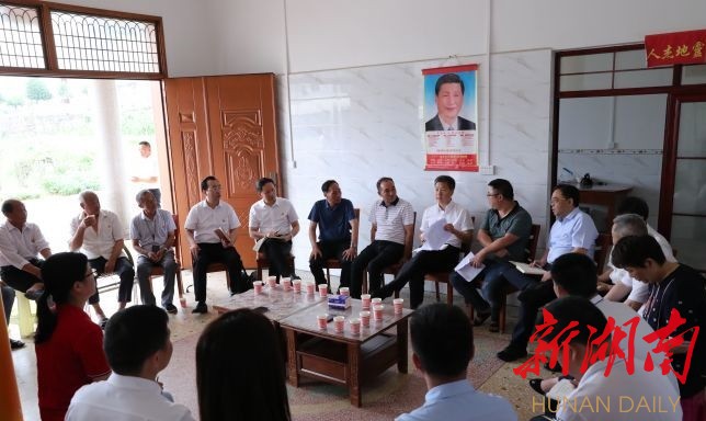 (7月2日,娄底市委副书记、代理市长曾超群率队到涟源市桥头河镇甘冲村开展基层联点工作,并举行市政府党组理论学习中心组(扩大)党史学习教育“学史力行”专题学习研讨。这是曾超群在甘冲村以“屋场会”的方式与群众座谈,了解乡村振兴存在的问题)