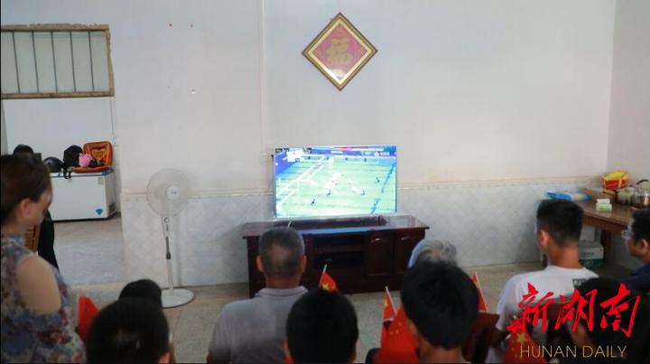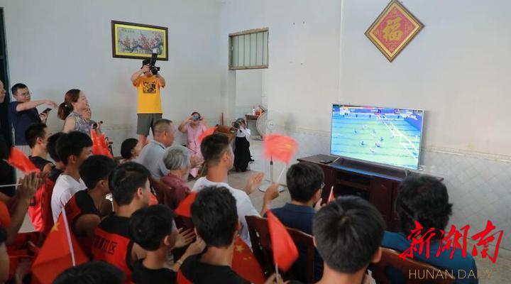湖南日报·新湖南客户端7月29日讯(通讯员 蒋林锋 蓝玉春 崔维艳(见习)) 7月28日下午,东京奥运会女子水球预赛B组第三场,中国队总比分16:11战胜东道主日本队,取得本届奥运会的首胜。在中国女子水球队队员翟颖的故乡江华瑶族自治县沱江镇竹园寨村,翟颖的父老乡亲们聚集在她的家中观看比赛,为中国女子水球队加油鼓劲!
