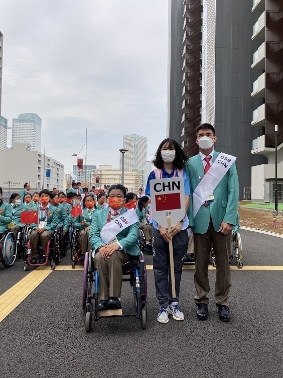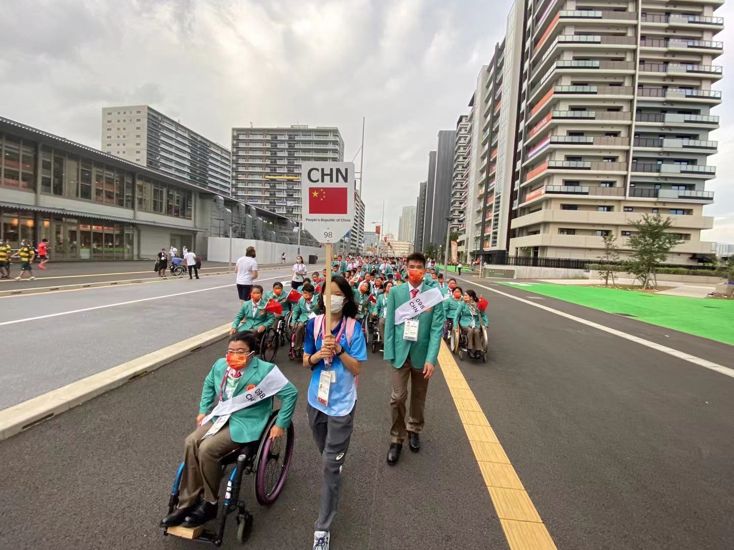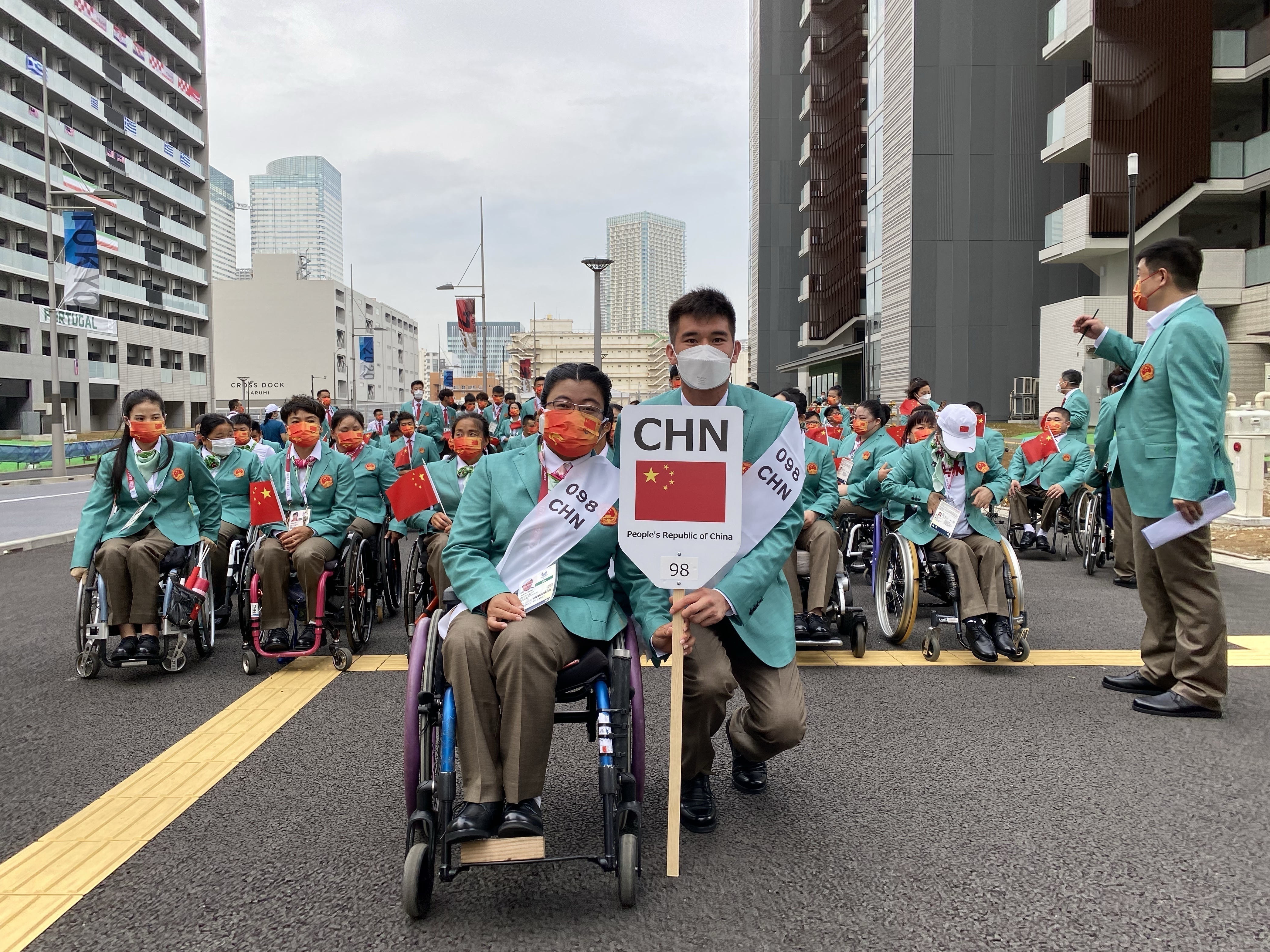 东京残奥会中国体育代表团身着礼服,正准备前往开幕式现场。