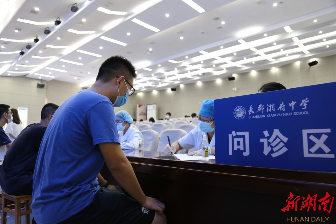 许韶歆介绍,此次集中接种由长沙市天心区新开铺街道社区卫生服务中心安排专业医护人员,校内共设3个接种点,接种时间为8月5日至6日。接种对象不仅涵盖了新高一至新高三的学生,高三毕业生也纳入进来,预计共接种近5000名学生,分4批进行。家住长沙城区的学生要求全部来校接种,家住长沙城区以外地区的可在居住地自行到属地社区卫生服务中心进行接种,也可来学校接种。黄码、红码,有发烧等症状,有接种禁忌症和正在隔离中及目前处在中高风险地区的学生,已通知暂缓来校接种。此外,学校还安排了救护车以及急救设备和药品,坚决做到接种零风险。