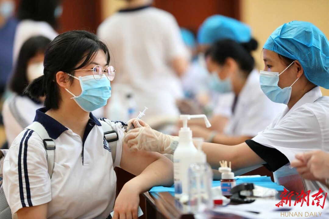 (8月5日,长沙市长郡湘府中学,学生正在进行新冠疫苗接种。)