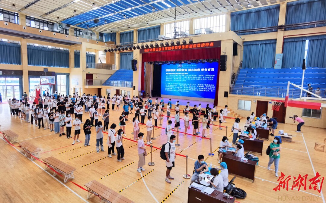 长沙市麓山滨江实验学校:体育场“变身”接种点,不到40分钟完成276名学生接种