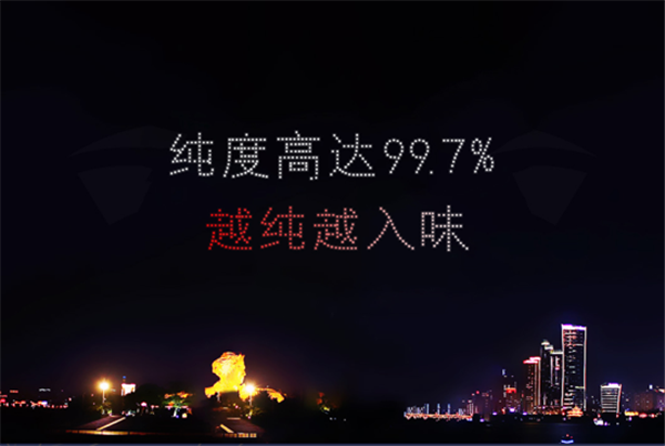 发布会后,与会嘉宾来到在长沙世界之窗摩天轮旁,欣赏了精彩绝伦的无人机灯光秀。600架无人机冉冉升起,在天空中飞出“松態997”和“纯度高达99.7,越纯越入味”等图像,与世界之窗摩天轮圆心闪烁的“雪天盐”和外圈滚动的“高端盐,买雪天”交相辉印,给星城长沙带来了一场美伦美奂的视觉盛宴,充分展示了雪天盐业通过高品质、多样化的产品,丰富和健康人民美好生活的企业愿景和坚定信心。