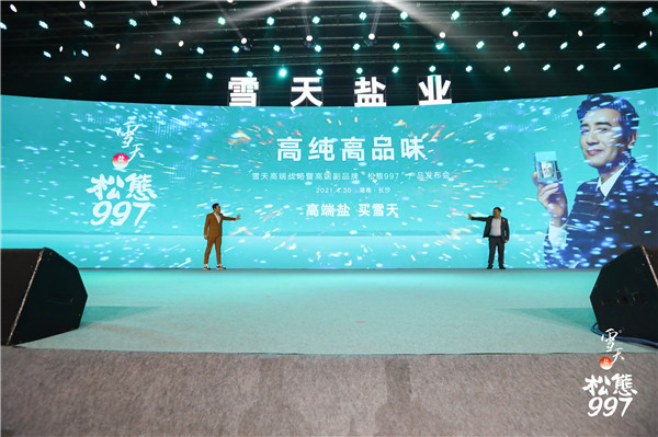 雪天盐业总经理王哈滨发布了“松態997”副品牌战略及系列产品。他指出,“高端战略”的内核是技术的升级和产品的升级,在雪天盐业技术与工艺不断升级、内部成果催化和外部消费趋势的背景下,企业实行“高端战略”是水到渠成。随后,他宣布雪天盐业正式推出首个高端副品牌——“松態997”。