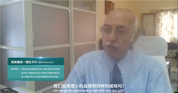 “我们能用更少的盐得到同样的咸味吗?”国际食品科技联盟主席,国际营养科学联盟副主席普拉卡什教授(Prakash,Dr. Professor )在远程视频致辞中提出了这样一个问题。