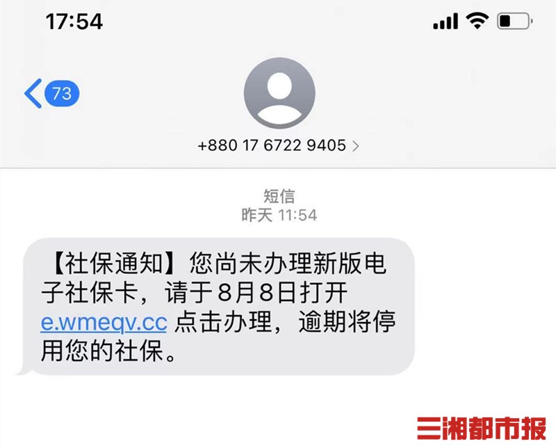 三湘都市报·新湖南客户端8月9日讯(记者 王智芳)收到短信通知社保账户需要升级,必须点开网址办理否则面临社保卡停用,你会怎么应对?