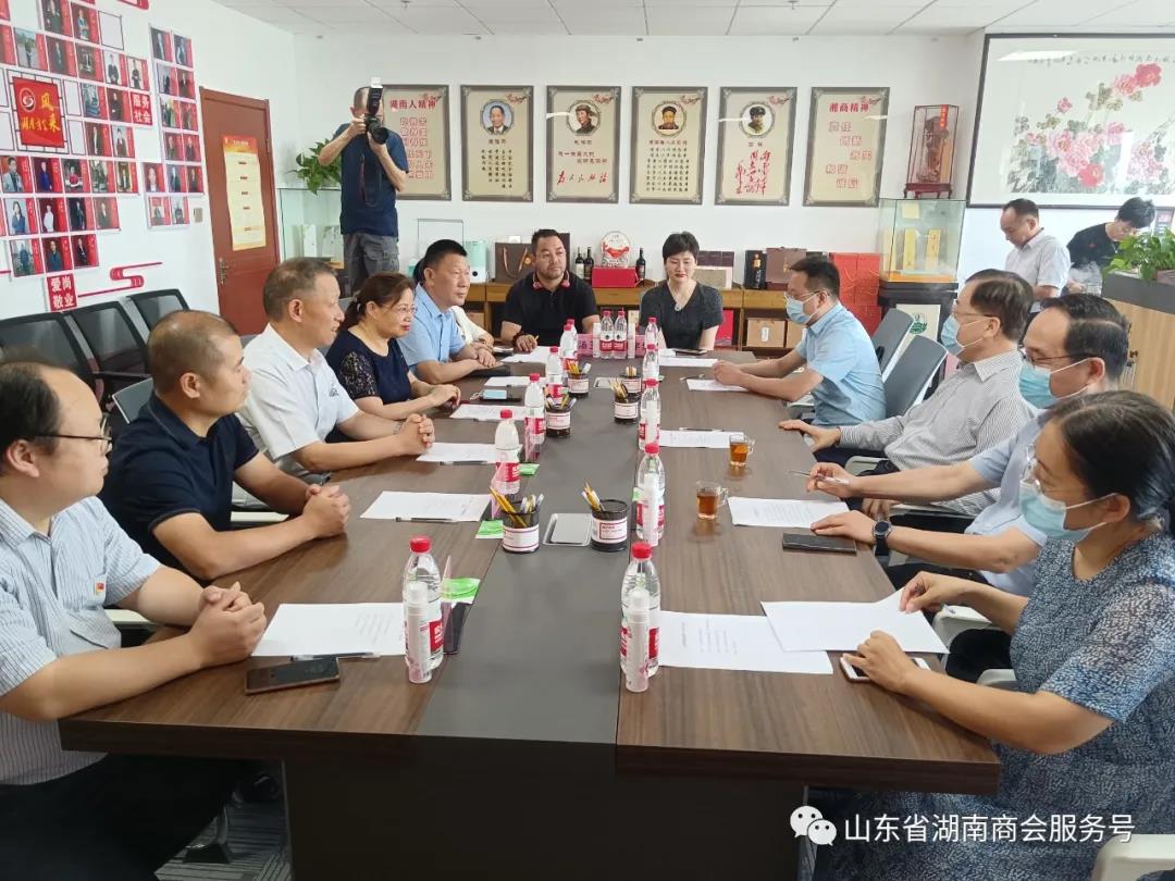 山东省湖南商会会长吴梦军向张江汀一行介绍汇报了商会建设情况,张江汀对山东省湖南商会成立以来取得的成绩给予了充分肯定。