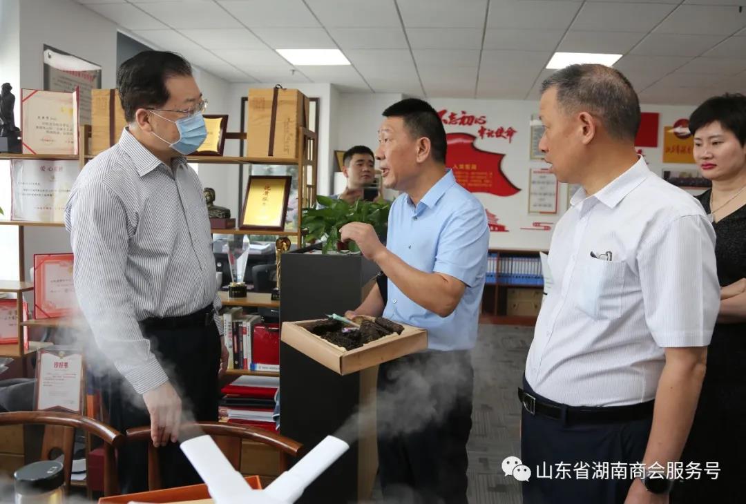 张江汀说,湖南人杰地灵,文化历史悠久,“吃得苦、霸的蛮、耐得烦”的湖南人精神值得山东学习;湖南黑茶悠久历史,源远流长,还有其他很多湖南产品远销世界各地。山东是儒家文化的发源地,文化底蕴丰厚,山东、湖南文化共同点很多,许多湘籍企业家在山东工作多年,已成为新的“山东人”,这就需要我们更要紧密联系,促进共同发展。