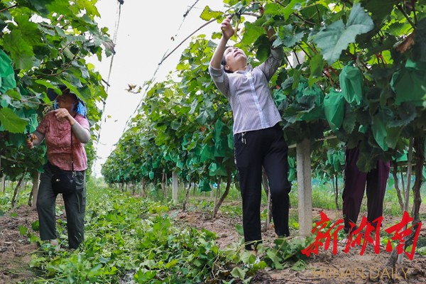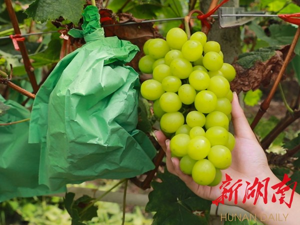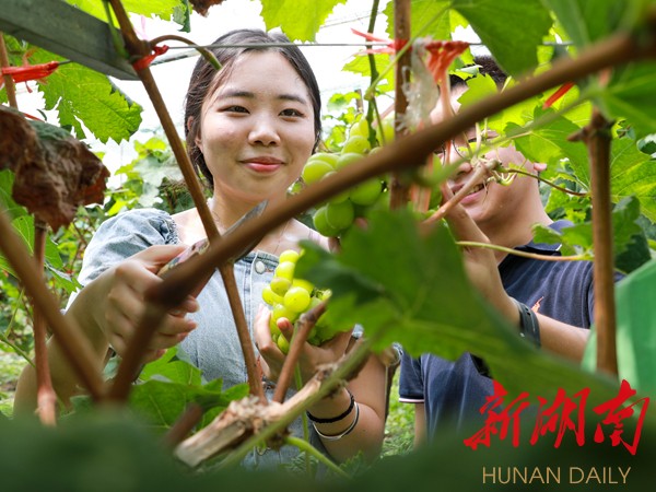 湖南日报·新湖南客户端8月20日讯(通讯员 周翔宇 龚保林 记者 聂沛)近日,衡阳市南岳区南岳镇双田村辉灵葡萄种植园迎来采收期,吸引不少市民前来体验采摘乐趣。
