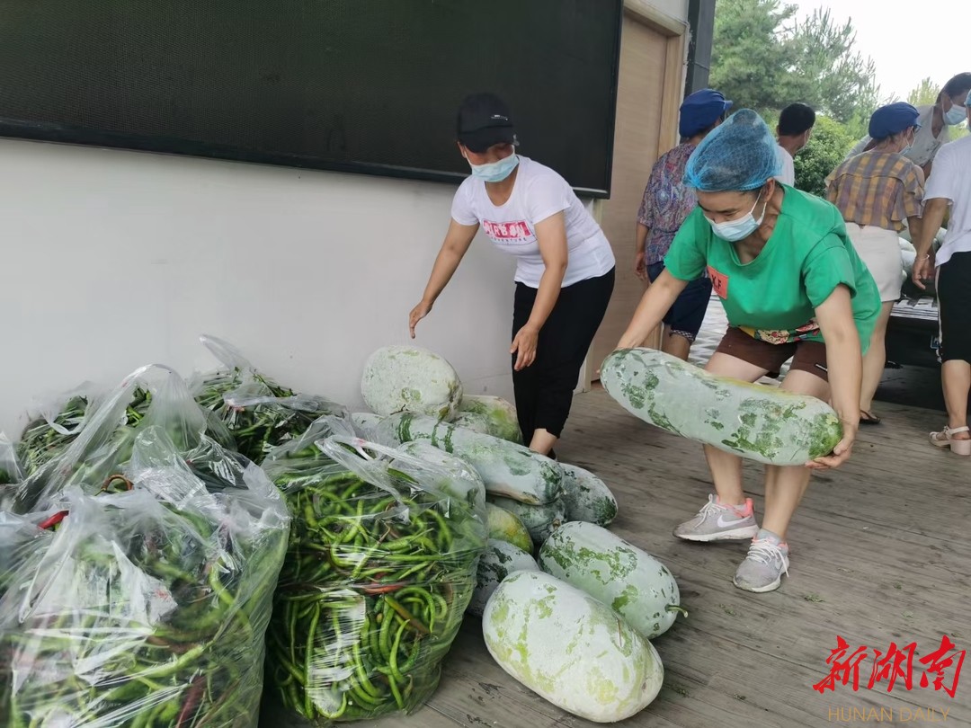 8月5日,“盒饭小组”成员忙着卸蔬菜。