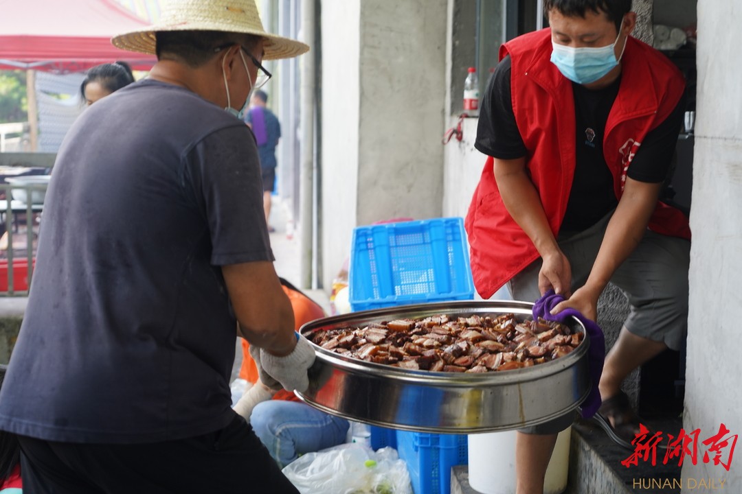 8月5日,“盒饭小组”成员准备制作荤菜。