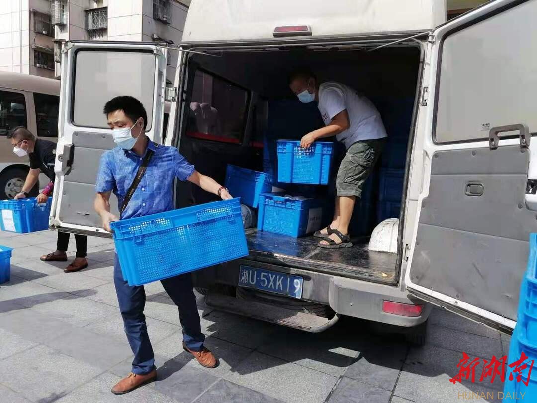8月12日,“盒饭小组”成员将盒饭分发到各个隔离点。