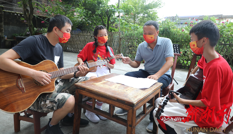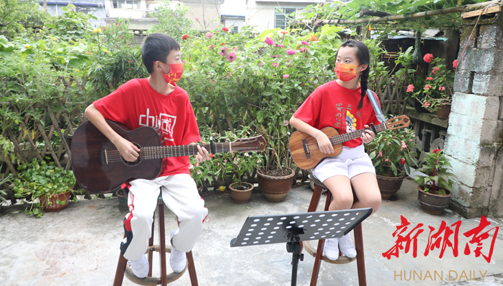 新湖南客户端8月11日讯(特约记者 田丽)“终将有一天,乌云必消散,人人幸福,家家笑脸……”8月10日,中国音乐家协会会员、湘西土家族苗族自治州保靖县文化馆馆长张君林,根据陈彼得的歌曲《迟到》重新填词,创作了一首抗疫少儿吉他弹唱歌曲,并指导双胞胎姐弟吴世璇、吴世瑞演唱歌曲,为早日打赢疫情防控阻击战加油添力。