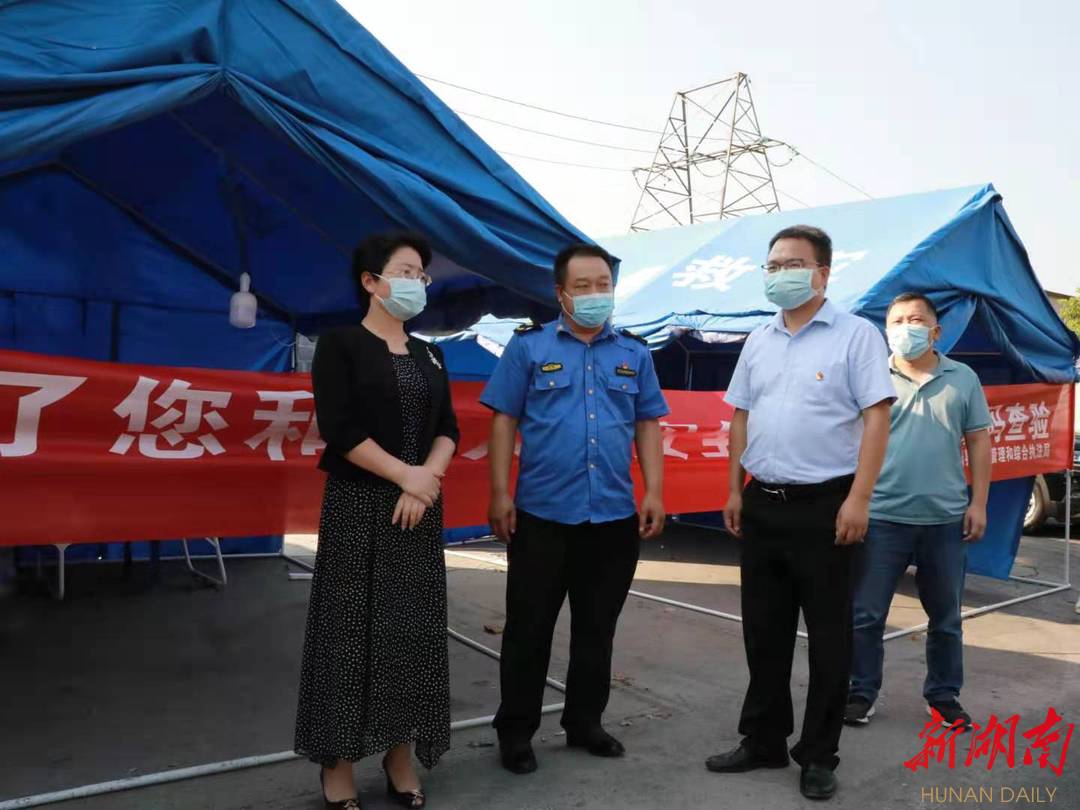 在保靖县阳朝乡白溪关、复兴镇狮子桥、复兴镇高速收费站等疫情防控检测服务点,杨志慧对全体一线疫情防控工作人员表示慰问和感谢,并嘱咐他们要做好防护措施、注意防暑降温。同时要求相关部门要为一线疫情防控人员做好后勤保障工作,饮用水、食物、防暑药品、消毒水等物资一定要及时足量供应。随后听取了相关站点负责人关于检测服务站点疫情检测排查工作的汇报,详细询问了工作以来排查出的相关数据及处理情况。杨志慧强调,交通站点要发挥好一线哨卡作用,切实承担起防控疫情漫入和传播风险的责任,落实好值班值守制度,做到严防死守,不漏一人。
