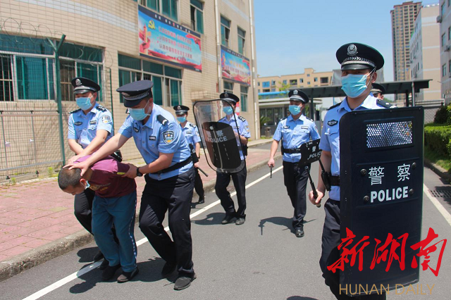 (图为娄底监狱组织开展监内防逃防暴演练)