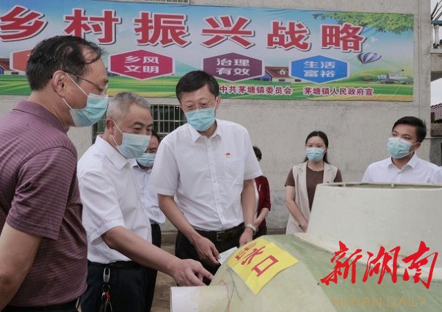 (8月18日,娄底市委书记、市人大常委会主任刘非到涟源市茅塘镇调研乡村振兴示范点建设。这是刘非在茅塘镇道童村察看了解无害化卫生户厕改造工作推进情况)