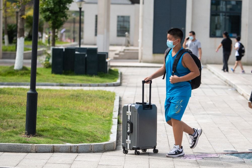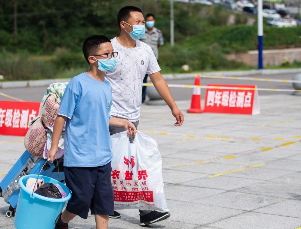 9月8日,在张家界市桑植县芙蓉学校,学生和家长带着行李开学报到。