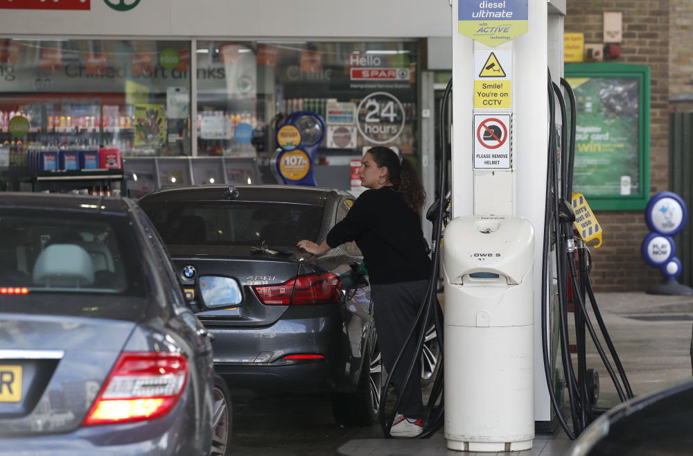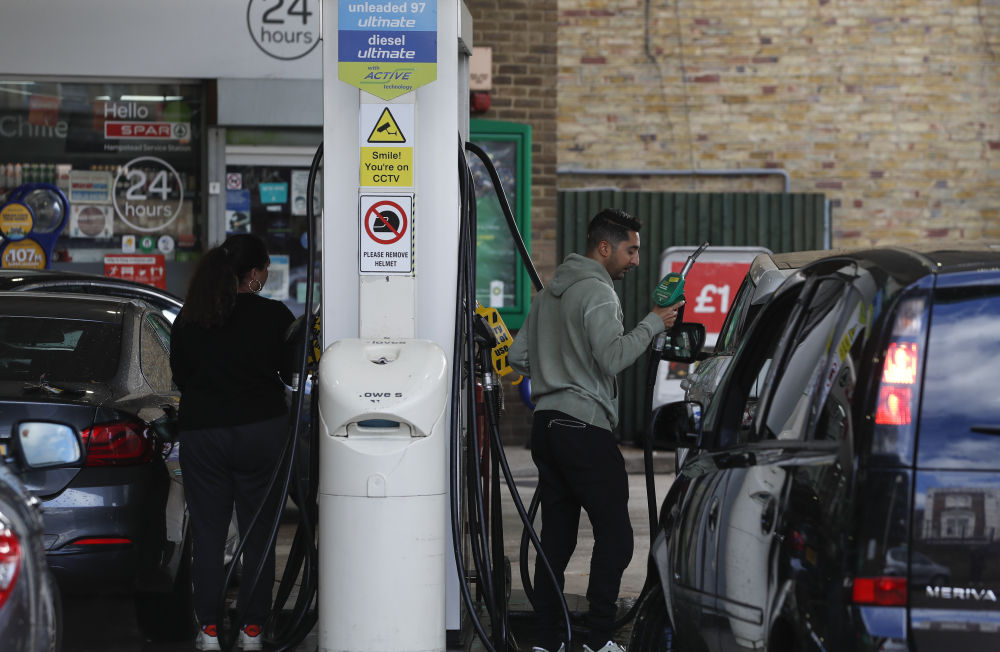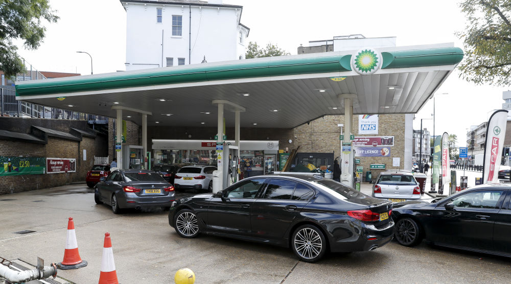 ↑9月27日,人们在英国伦敦一家加油站加油。