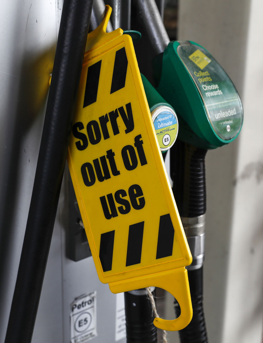 ↑这是9月27日在英国伦敦一家加油站拍摄的暂停使用的油枪。