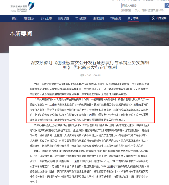 同日,深交所修订《创业板首次公开发行证券发行与承销业务实施细则》。