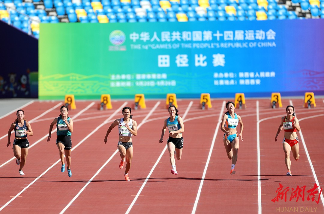 (图为9月20日上午,女子百米预赛的比赛现场。 陈放 摄)