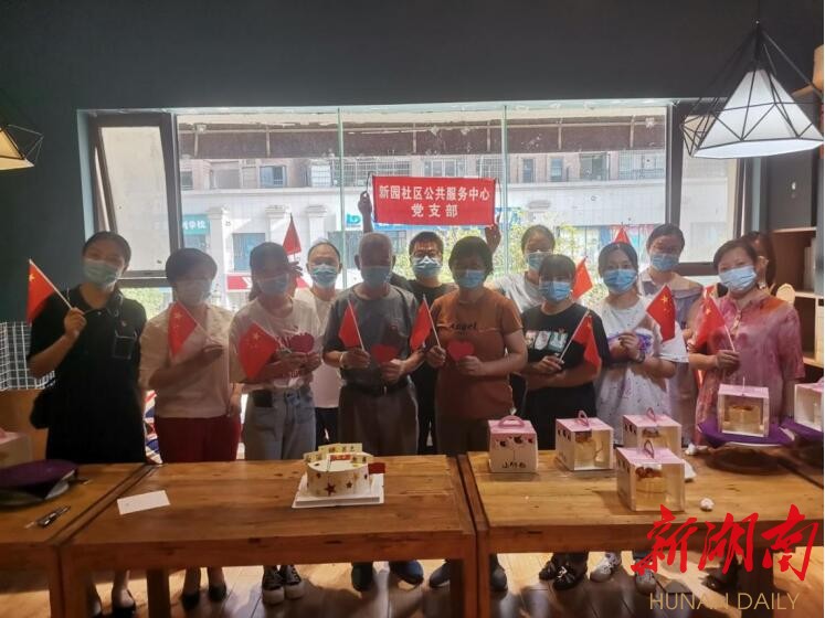湖南日报·新湖南客户端9月28日讯(通讯员 曹晓祎)“五星红旗迎风飘扬,胜利歌声多么响亮,歌唱我们亲爱的祖国,从今走向繁荣富强……”为庆祝中华人民共和国成立72周年,深入开展党史学习教育,今天下午,天心区桂花坪街道新园社区公共服务中心党支部开展“爱党爱国”主题党日活动,支部党员共同唱革命歌曲、自制蛋糕、写红色贺卡等,以别开生面的形式为祖国庆生。