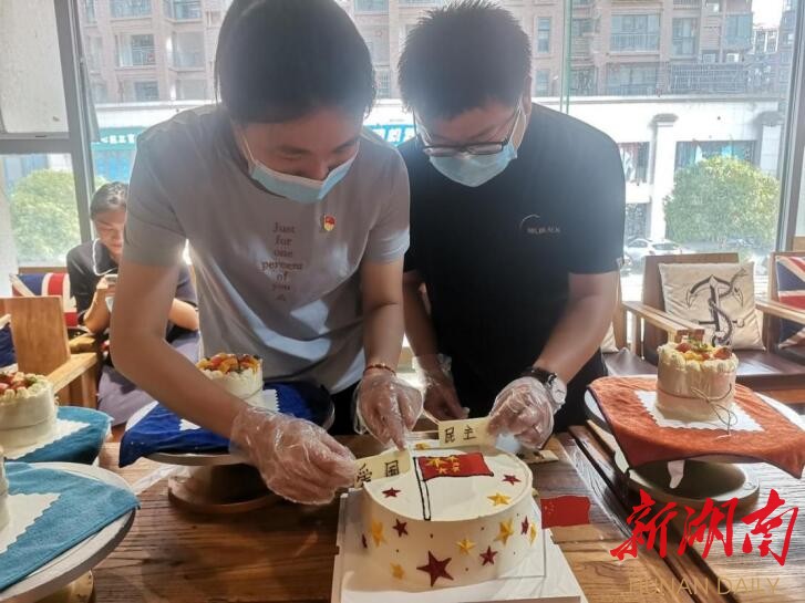 活动现场,在专业老师的指导下,大家认真学习制作蛋糕的程序和技巧,经过涂抹奶油、裱花边、点缀水果、创意装饰,一个个象征着对祖国无限祝福的蛋糕呈现在大家眼前。党员们有的在蛋糕上画了一个苹果,寓意着祖国平安;有的在蛋糕上画了一颗红心,寓意着不忘初心爱国情。在党支部书记的带领下,党员们齐唱《歌唱祖国》,表达对祖国的无限热爱,赞颂祖国的繁荣昌盛。“作为一名退休老党员,我深切感受到祖国的变化,人民生活水平越来越高,眼前的蛋糕意义非凡,祝我们的国家繁荣昌盛。”老党员张志明表示。