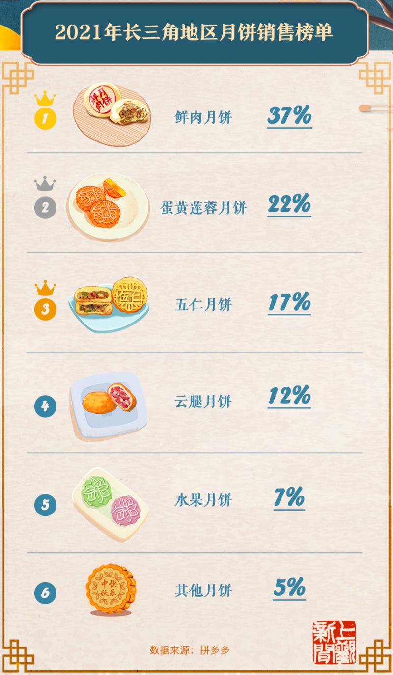 在苏式月饼中,又以鲜肉月饼颇负盛名。根据拼多多的数据,今年长三角地区销售量最佳的依旧是鲜肉月饼,销售量占总量的37%。