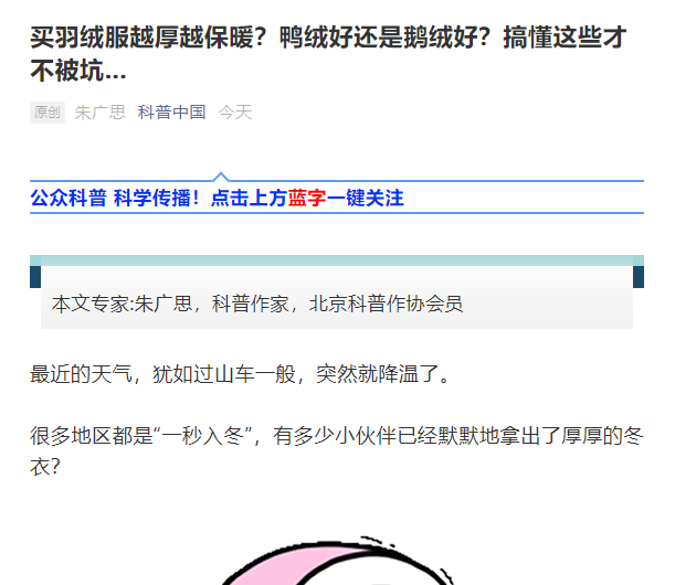 说起御寒,羽绒服是必不可少的一件冬衣了。