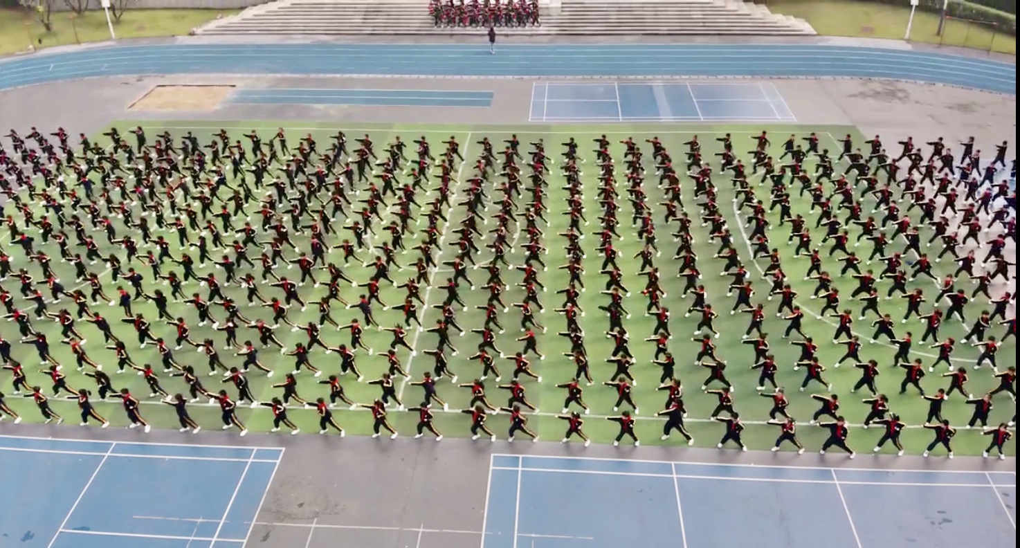 他们诵读的,是该校特色课程“人之态书法操”的歌词。当日,该校举行“人之态书法操”比赛,全校师生共享书法的魅力、书法操的活力。
