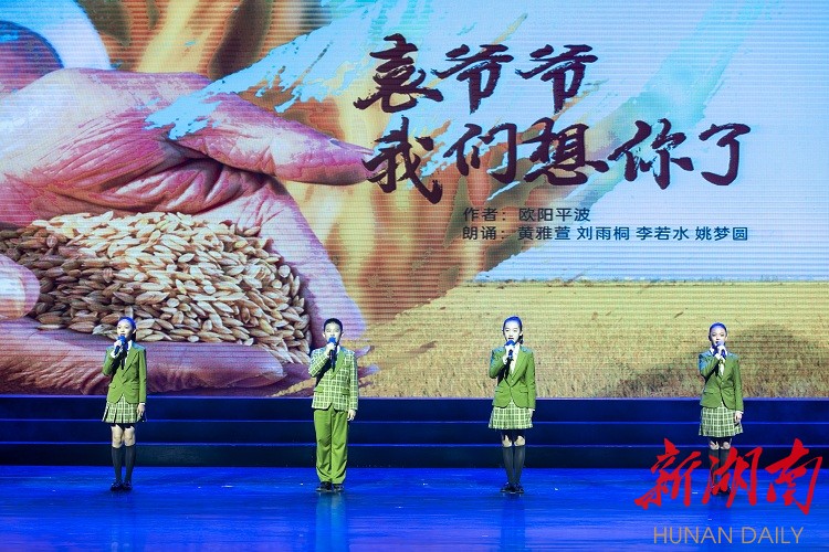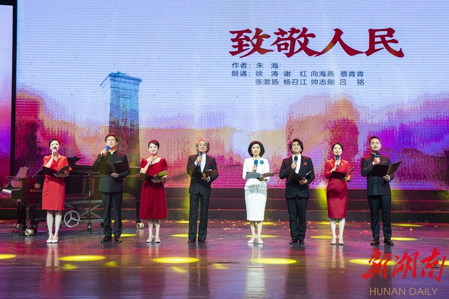 湘水流入海,楚云千里心。徐涛、杨召江、谢红、吕铭、常安、帅志刚等朗诵家深情演绎,将长沙的文化和精神演绎淋漓尽致。《秋·城·月》回荡着城市3000年的山河梦想,《沁园春·长沙》澎湃着穿越时空的革命豪情。 “人就像种子,要做一粒好种子”,一首《袁爷爷,我们想你了》引发了观众的思念,大家深切怀念起人民鞠躬尽瘁的奉献者们。《心在岳麓》《共和国的脊梁——两弹元勋邓稼先》《红军婆婆》《在浏阳,在大夫第》《信仰的光芒》《祖国啊,我亲爱的祖国》……诗文朗诵会巧妙运用大屏幕、活动布景、钢琴伴奏、代表性道具,加入了戏剧表演元素,充分展现每首诗歌的艺术特色和精神内核,引发现场观众共鸣,赢得了观众的掌声。