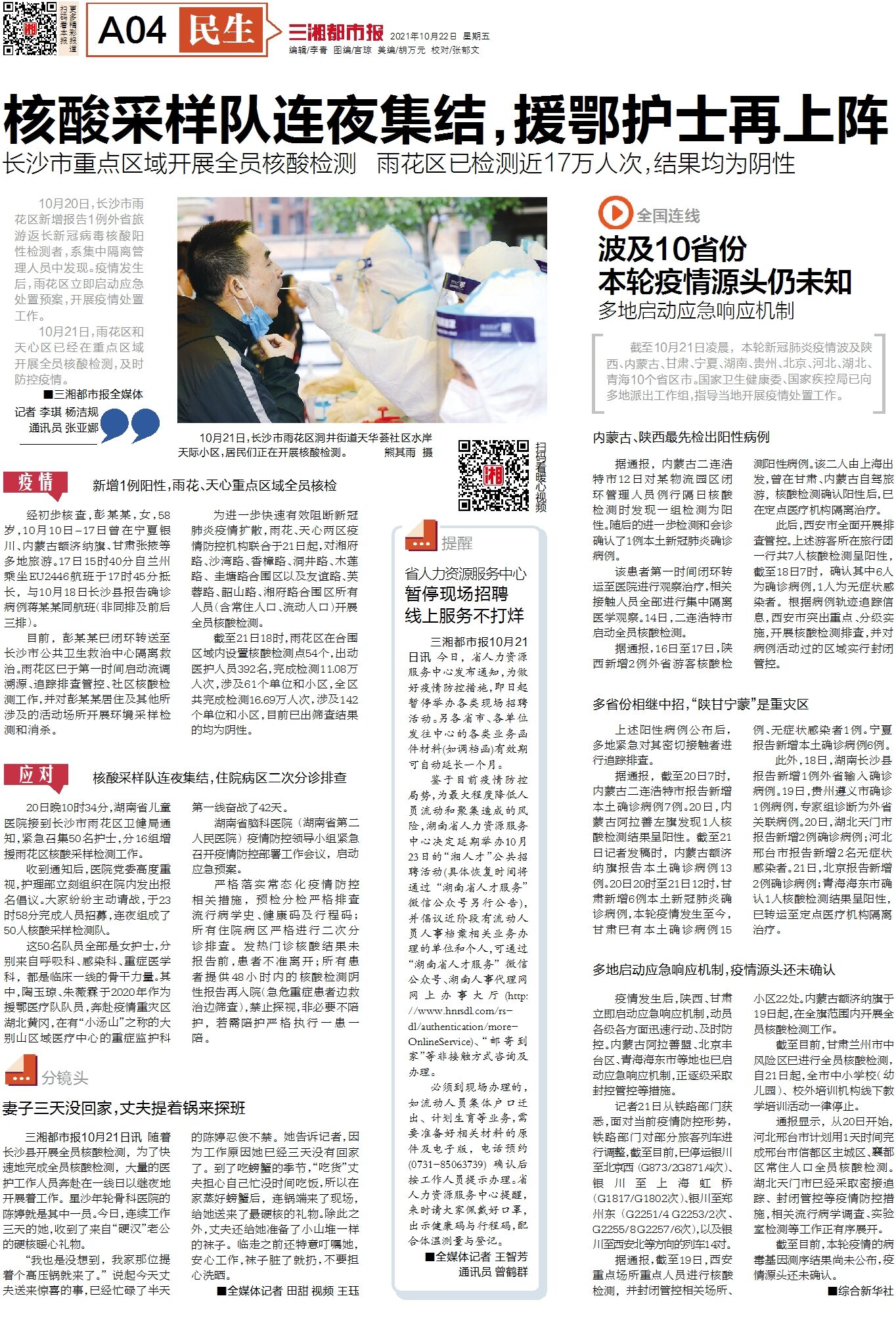 本轮疫情波及10省份,长沙核酸采样队连夜集结。