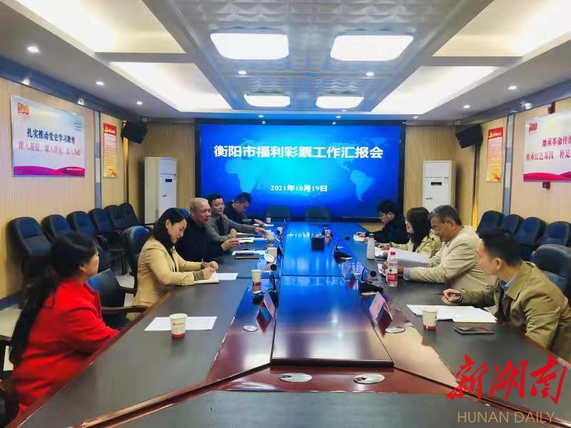 10月19日,中国福利彩票发行管理中心市场三部主任龚云一行来衡阳市调研福彩销售管理工作并召开座谈会,省福彩中心党支部副书记、副主任柴李军,衡阳市民政局局长范振华等陪同调研。