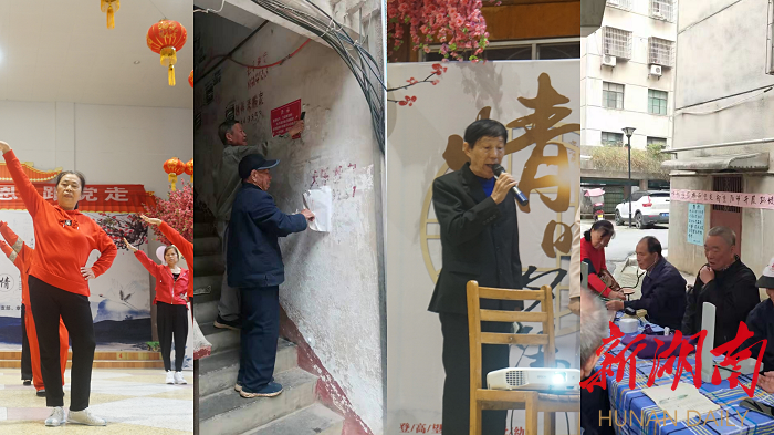 14日上午9时,伴随着阵阵掌声,洞庭社区领衔的文化交流活动拉开序幕,退役军人、居民代表、党员代表等100多位老人参加,节目有声有色的进行,老人们脸上也洋溢着幸福的笑容。14个节目把健康、文明、爱国等党的声音传到观众身边,送到观众心间。正如老同志喻湘平所说:“厂地融合的趋势不可挡 ,而文化互融是关键的一步,我们这些老人,要利用一切机会,充当好融合发展的先行者”。岁月在他们脸上悄悄留下痕迹,但温情的眼眸依然寄托着为民情怀。四化社区各支部整合资源,动员夕阳力量,为居民送去爱心服务,分批开展了清洁卫生、健康问诊、维修家具等志愿服务,让“回馈社区”得到实践验证。此外,其他村(社区)都相应得开展了不同形式的活动,长岭街道到处弥漫着节日的欢快。