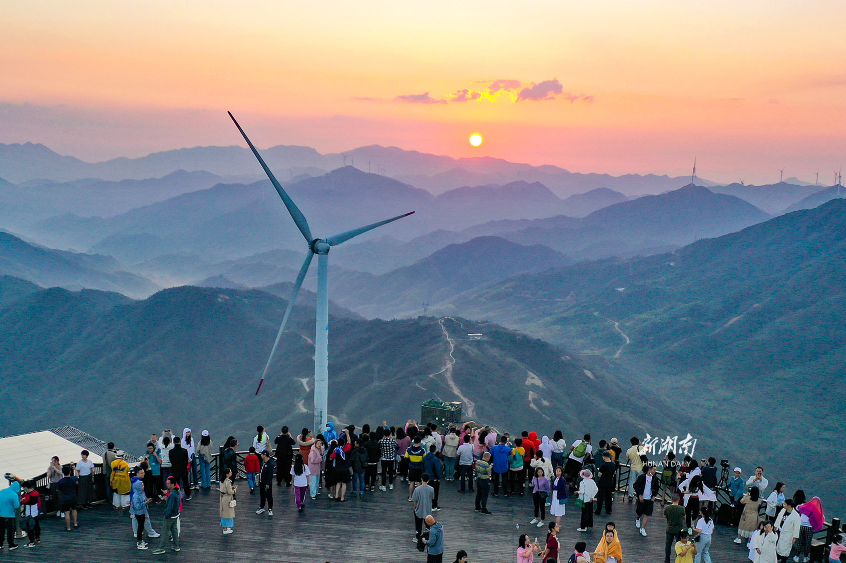 10月6日,游客在蓝山县云冰山风景区观日出。国庆期间,该县的云冰山、三分石、湘江源国家森林公园等自然风景区,倍受各地游客青睐。潘百旺 摄