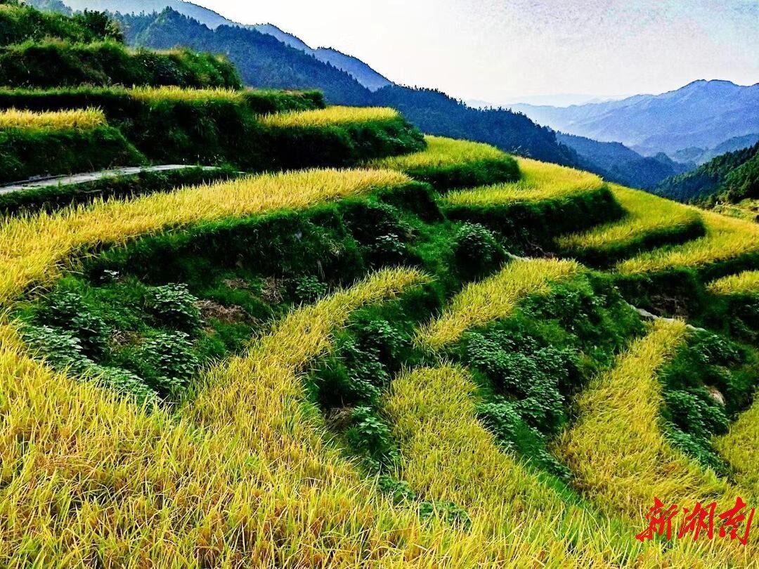 又到一年收割季节,隆回县虎形山瑶族乡白水洞村千亩梯田喜获丰收。金黄稻田高低错落,依着陡峭山体蜿蜒,蔚为壮观。