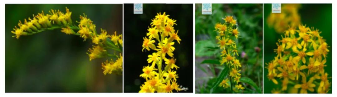 △由左至右分别为“加拿大一枝黄花”“一枝黄花”“毛果一枝黄花”“钝苞一枝黄花”(图源/中国植物图像数据库)