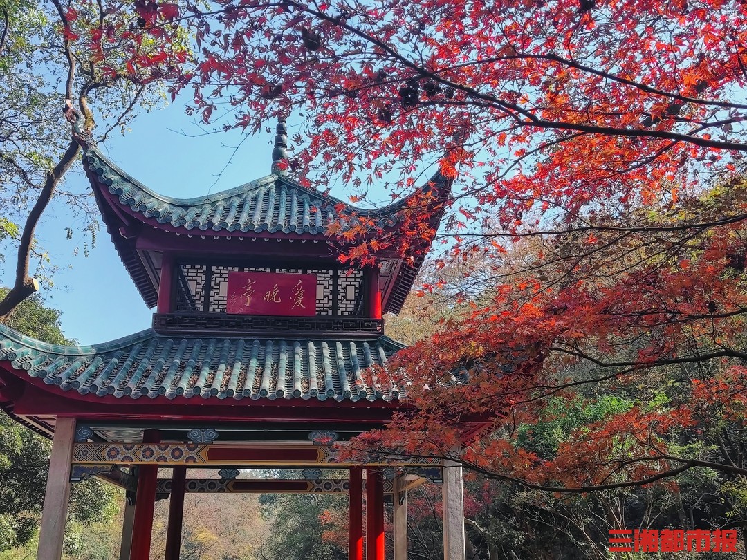 秋去冬来满目诗,红枫似火两相知。11月26日,长沙岳麓山,爱晚亭附近的枫叶终于红透,再现万山红遍,层林尽染的美景。岳麓山赏枫最佳时间已经到来。(实习生 王翊玮 彭丽)