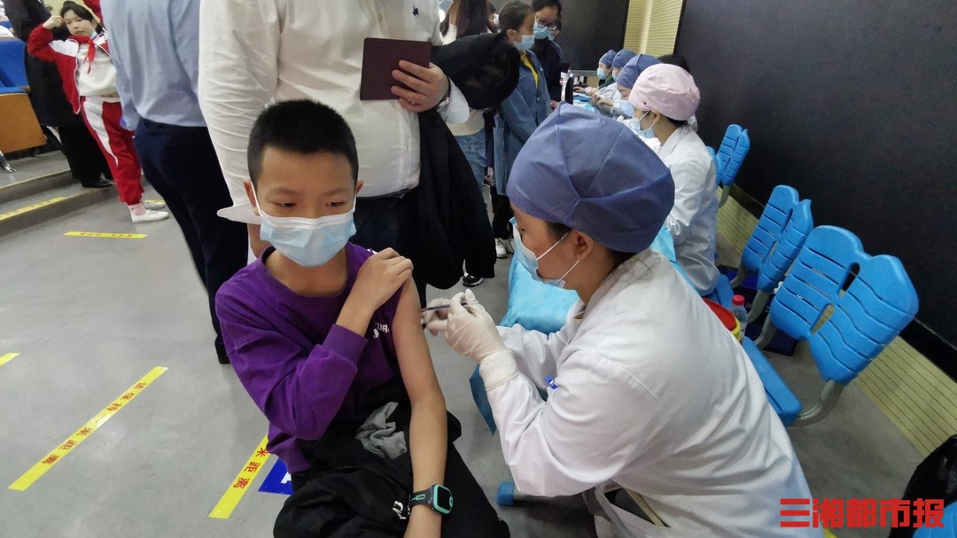 三湘都市报·新湖南客户端11月6日讯(全媒体记者 杨斯涵 黄京 通讯员 邹蓉 吴刚 剪辑 刘品贝) “今天打针一点都不疼,还没有接种新冠疫苗的小朋友不要害怕,一定要尽早接种哦。”今日上午10点左右,在长沙市开福区福元小学,史家坡小学六年级学生小杨刚刚在爸爸的陪伴下接种完新冠病毒疫苗。据悉,今天是长沙市开福区6-11岁学生免费入校集中错峰接种首日,预计首批共有超3万余名学生自愿接种,将在11月6日至7日,11月11日至14日期间分两批次为其接种。