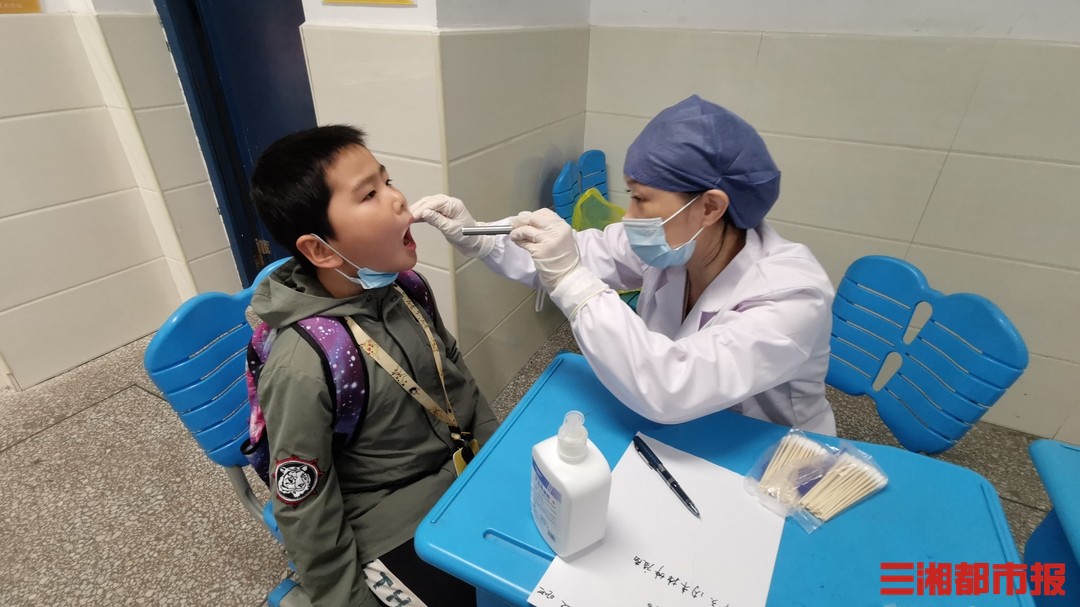 “最近有没有感冒发烧咳嗽?”“近14天有没有接种其他疫苗?”……在学校预检室,医务人员一一仔细询问每一位学生的相关情况,确认没有后,医务人员还进行了喉咙、肺部等检查。顺利通过预检的学生便可前往接种区。