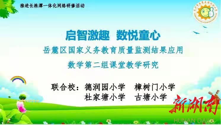 新湖南客户端11月26日讯(通讯员 黎敏 彭美君)为贯彻落实“双减”政策,充分运用国家义务教育质量监测结果,针对如何提高学生学习数学的兴趣,让数学课堂更加“有趣”“有味”“高效”“高质”,长沙市岳麓区德润园小学、樟树门小学、杜家塘小学、古塘小学四校联合开展了课堂教学研究活动。